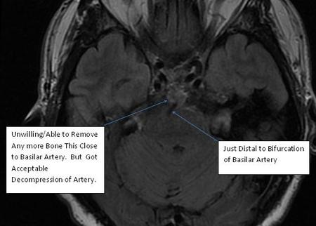 For more medical people, a small fragment of bone was left adjacent to the basilar artery. It was too tough to get to and not worth the risk as determined by Dr. Gardner.